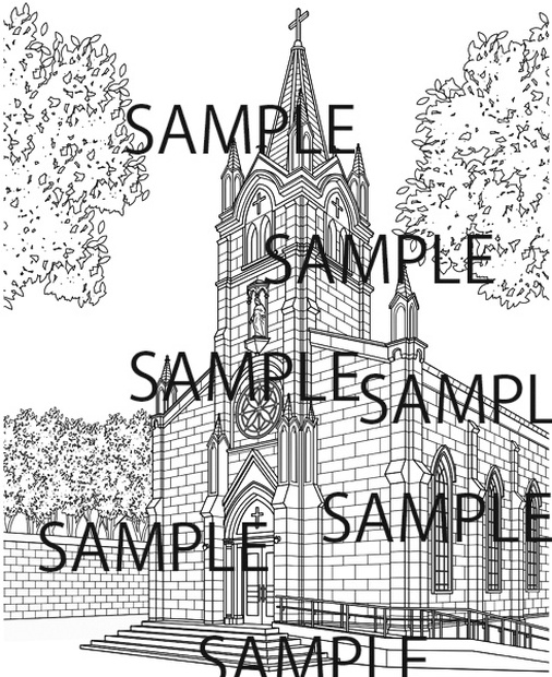 ロイヤリティ・フリーの漫画背景素材「教会」です。